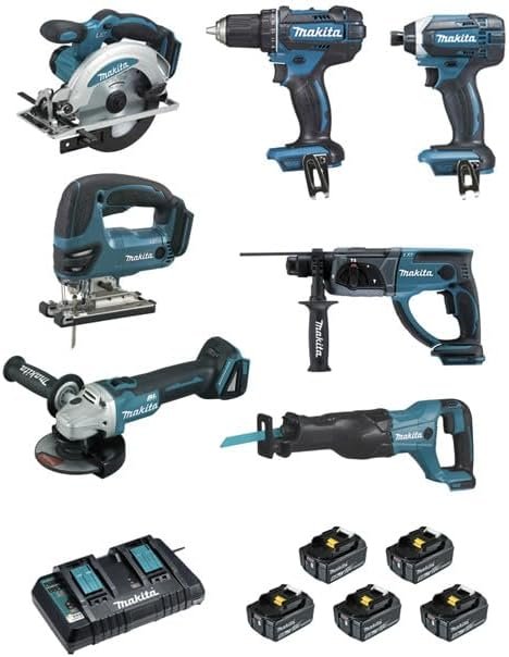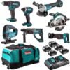 Makita DLX7013PT1 18 V Akku-Maschinen-Set – 7-teiliges Profi-Werkzeug-Set inkl. 5 Akkus