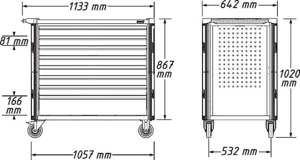 Der HAZET 179NXXL-8D Werkzeugwagen ist ein innovativer, robuster Werkstattwagen für den professionellen Einsatz. Aus hochwertigem Edelstahl gefertigt, überzeugt er durch doppelwandige Konstruktion, abgedichtete Arbeitsflächen und integrierte Zubehör-Schnittstellen. Die Hochsicher-Schließanlage mit Zylinderschloss schützt Ihr Werkzeug zuverlässig. Ideal für Werkstätten, Montage oder Materialtransport – dynamische Tragkraft 750 kg, statisch 1.000 kg.