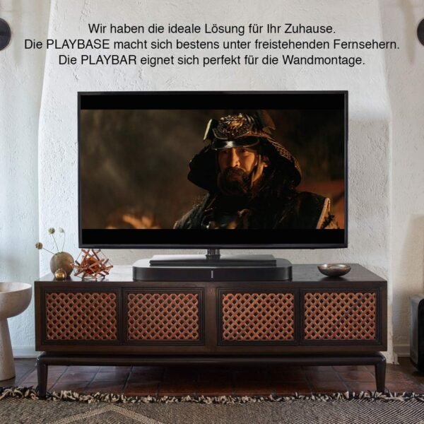erwandeln Sie Ihr Wohnzimmer in einen Kinosaal und genießen Sie grenzenloses Musikstreaming mit der Sonos Playbase. Anders als herkömmliche Soundbars, die vor dem Fernseher hängen, verschwindet diese elegante Soundbase diskret direkt unter Ihrem TV-Gerät. Sie wurde speziell für Fernseher entwickelt, die auf Standfüßen stehen, und trägt Geräte bis zu 35 kg mühelos.