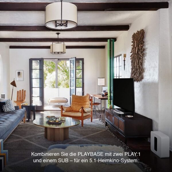 WLAN-Streaming & Multiroom-Kompetenz Die Sonos Playbase ist mehr als nur ein TV-Lautsprecher. Über WLAN (statt Bluetooth) streamen Sie Musik ohne Unterbrechungen durch Anrufe oder Nachrichten. Integrieren Sie die Playbase in Ihr Sonos Home Sound System, um Musik synchron im ganzen Haus abzuspielen oder sie mit einem Sonos SUB und zwei Play:1 Speakern zu einem echten 5.1 Surround-System zu erweitern. Kompatibel mit AirPlay und Amazon Echo.